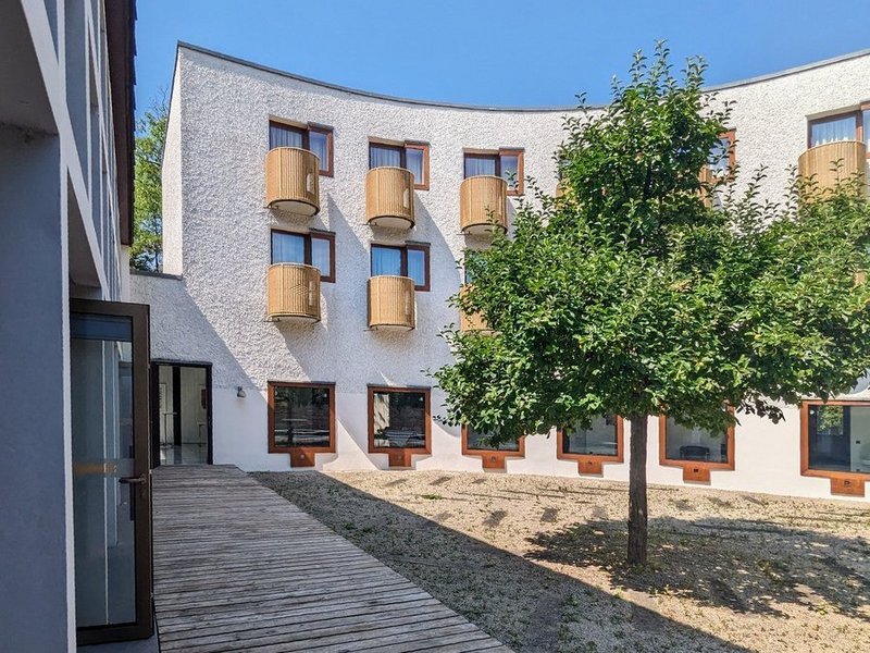 Alle 61 modern eingerichteten, freundlich-hellen Einzel- und Twinzimmer verfügen über TV und kostenfreies WLAN, die Bettengröße ist 90 x 200 cm. Die Ausstattung orientiert sich am Bauhaus-Stil. Das Bad ist mit Dusche, Haarfön und WC ausgestattet. Ein behindertenfreundliches Zimmer steht zur Verfügung.